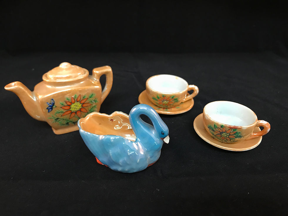 TOY TEA SET + NORITAKE HAND PAINTED SWAN